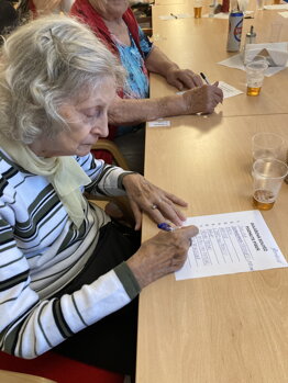 Společné stolování doprovázela hra na kytaru v podání pana Kotisy. Klientky s radostí zavzpomínaly, zazpívaly si známé melodie a nechyběla ani soutěž v hádání názvů písní z filmů a seriálů. Celé odpoledne se neslo v příjemné a veselé atmosféře.
